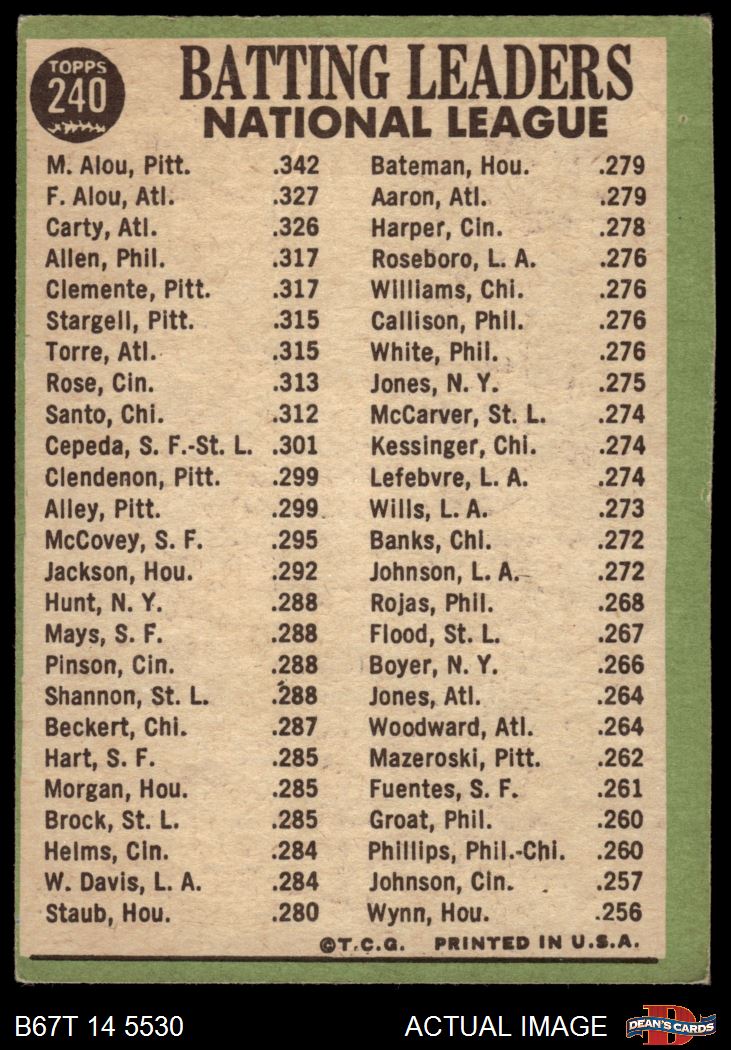 1967 1967 #240 - Felipe Alou / Matty Alou / Rico Carty NL Batting Leaders 4 - VG/EX