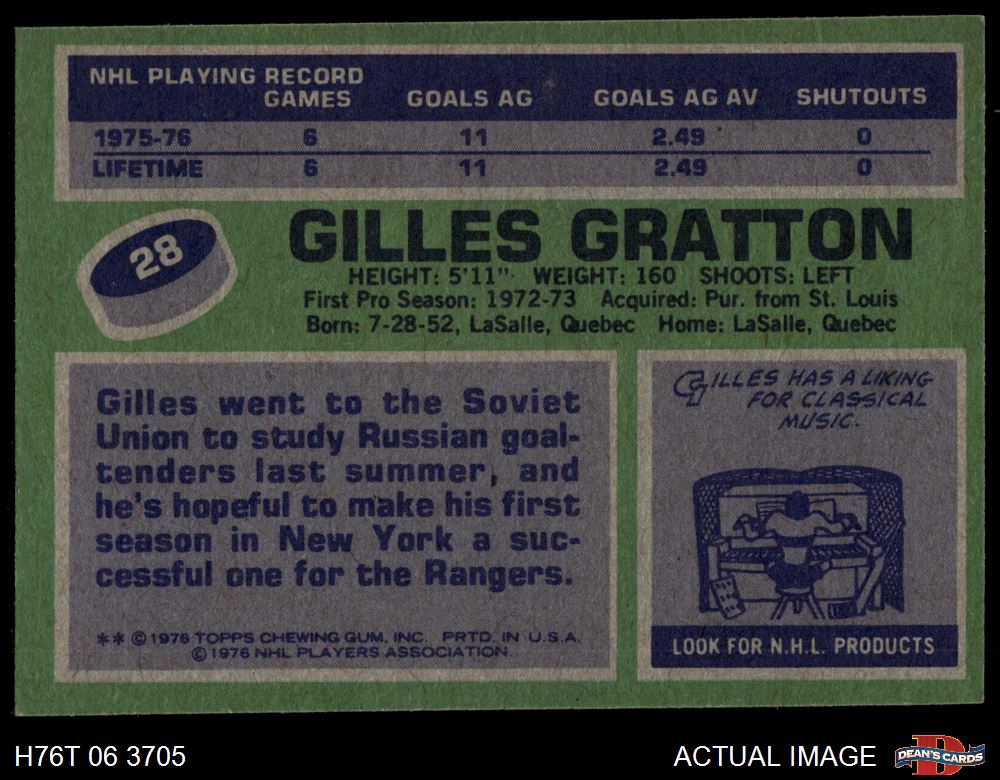 1976 Topps #28 Gilles Gratton 5 - EX