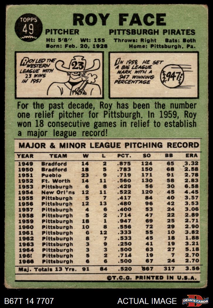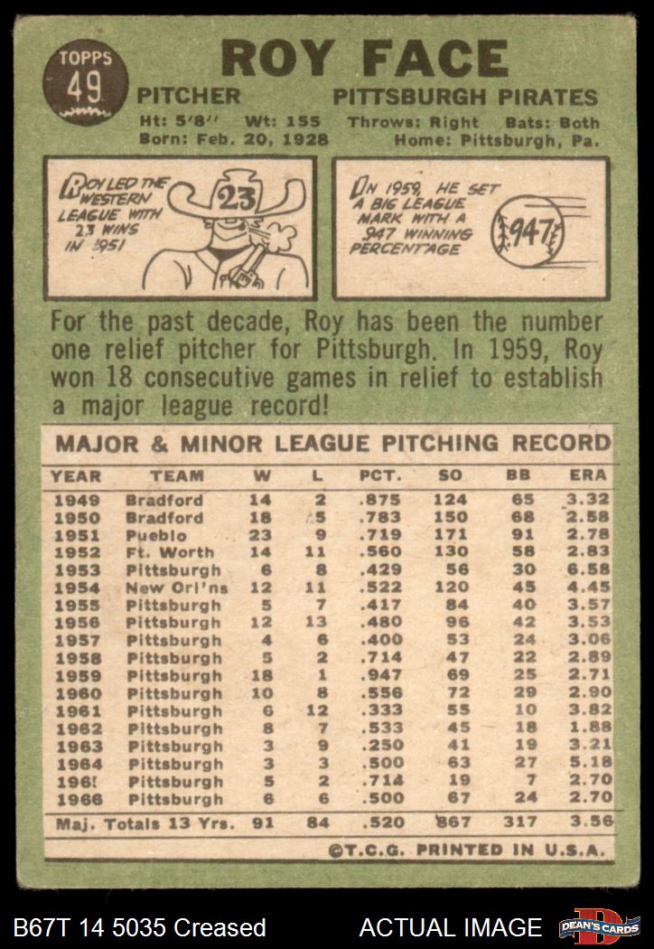 1967 Topps #49 RO Roy Face Front Thumbnail