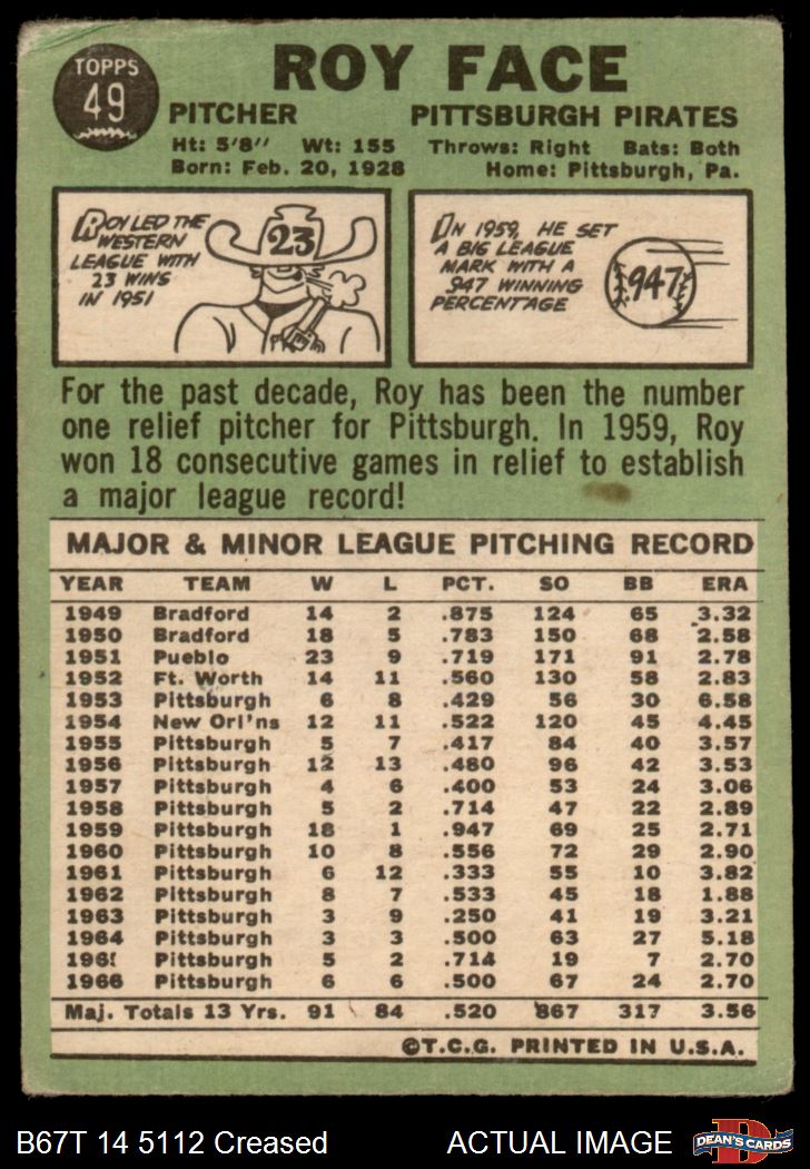 1967 Topps #49 RO Roy Face 1.5 - FAIR