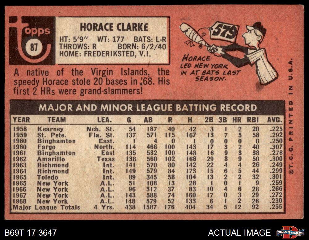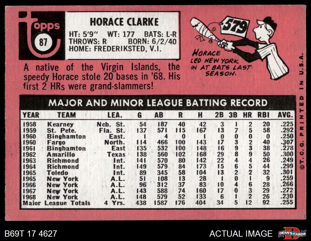 1969 Topps #87 Horace Clarke