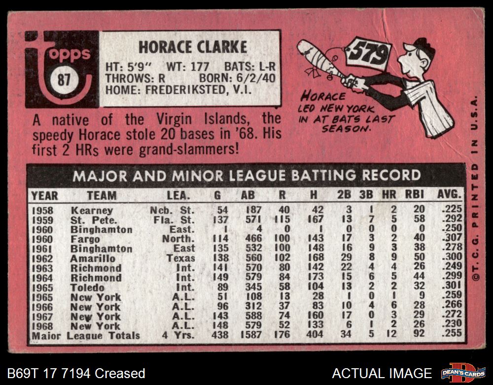 1969 Topps #87 Horace Clarke 2 - GOOD