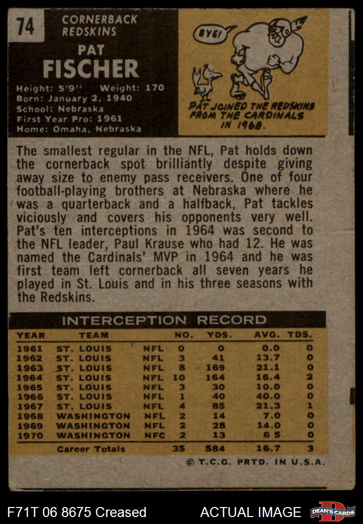 1971 Topps #74 Pat Fischer 2 - GOOD
