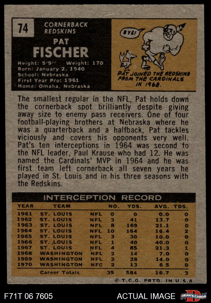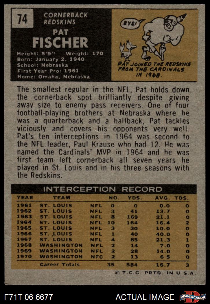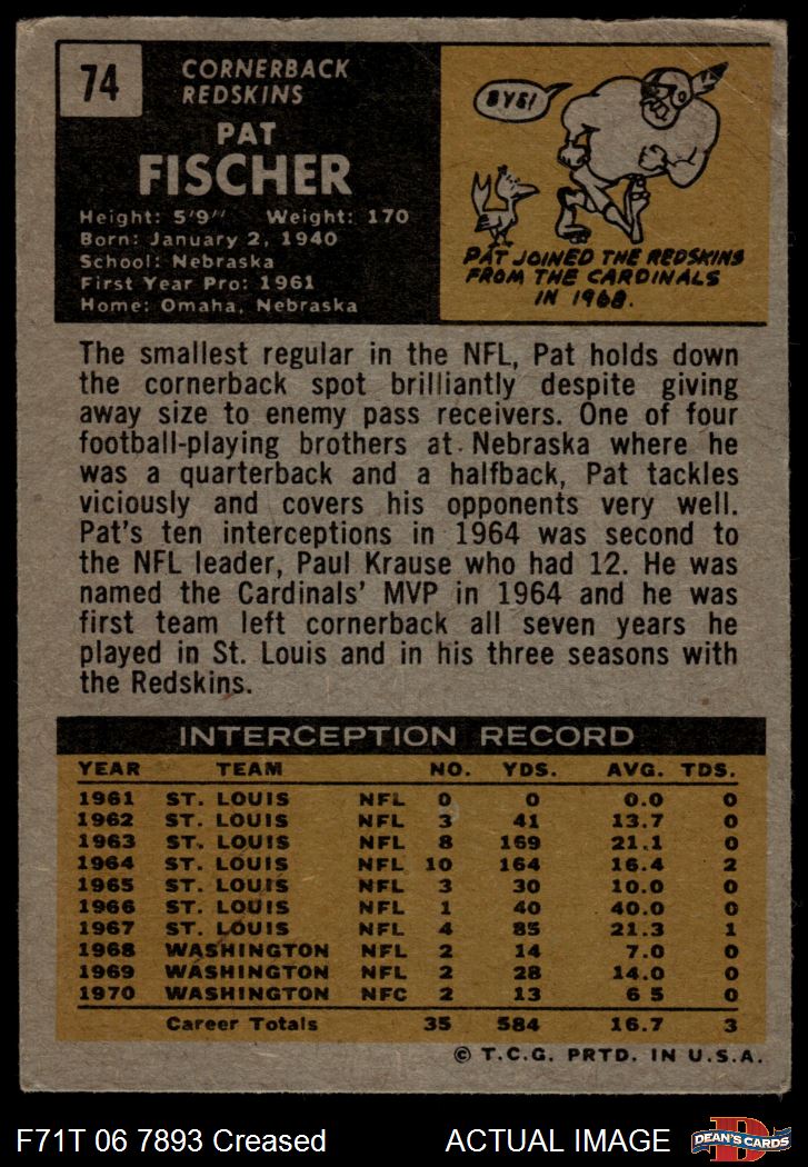 1971 Topps #74 Pat Fischer 3 - VG