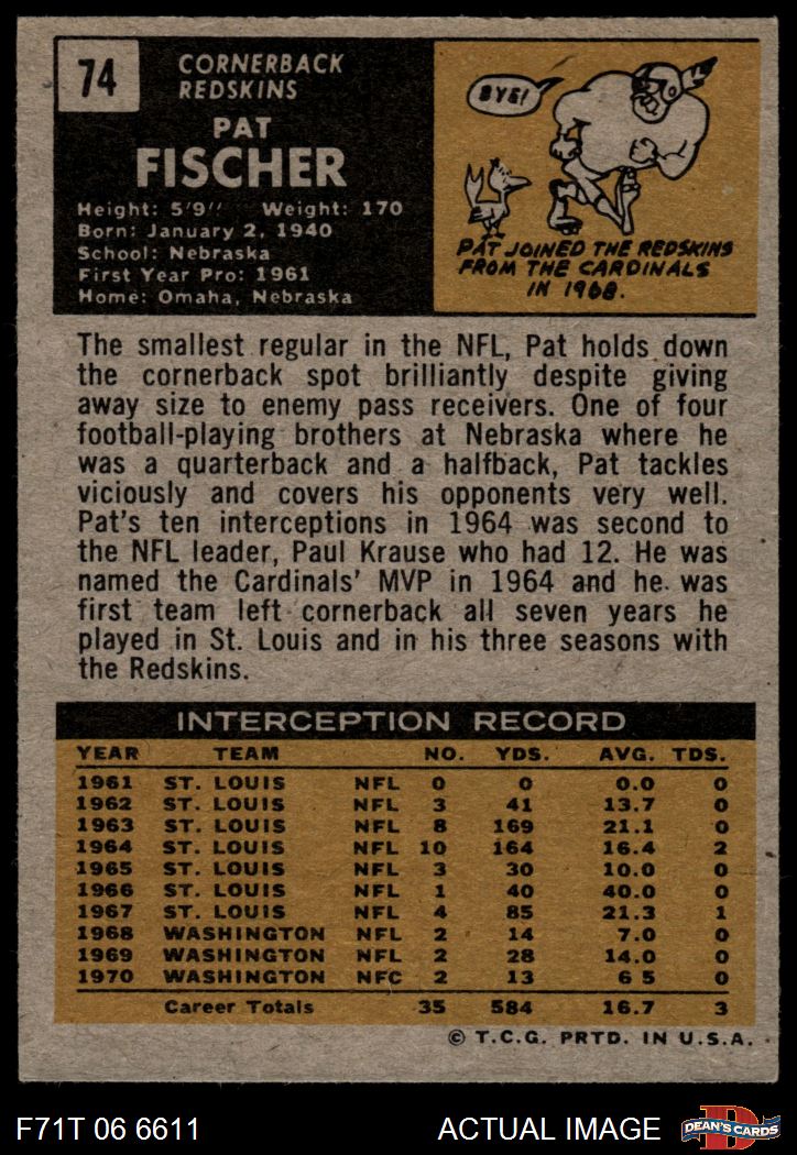 1971 Topps #74 Pat Fischer 6.5 - EX/MT+