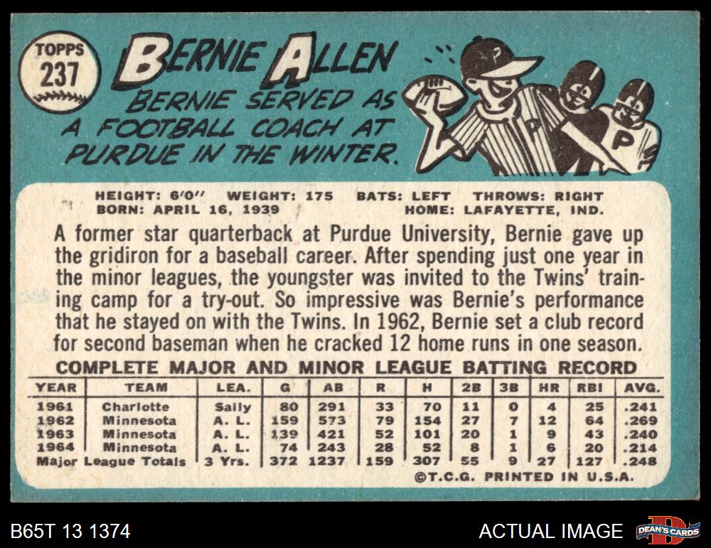 1965 Topps #237 Bernie Allen 5 - EX