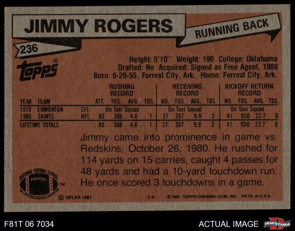 1981 Topps #236 Jimmy Rogers 4 - VG/EX