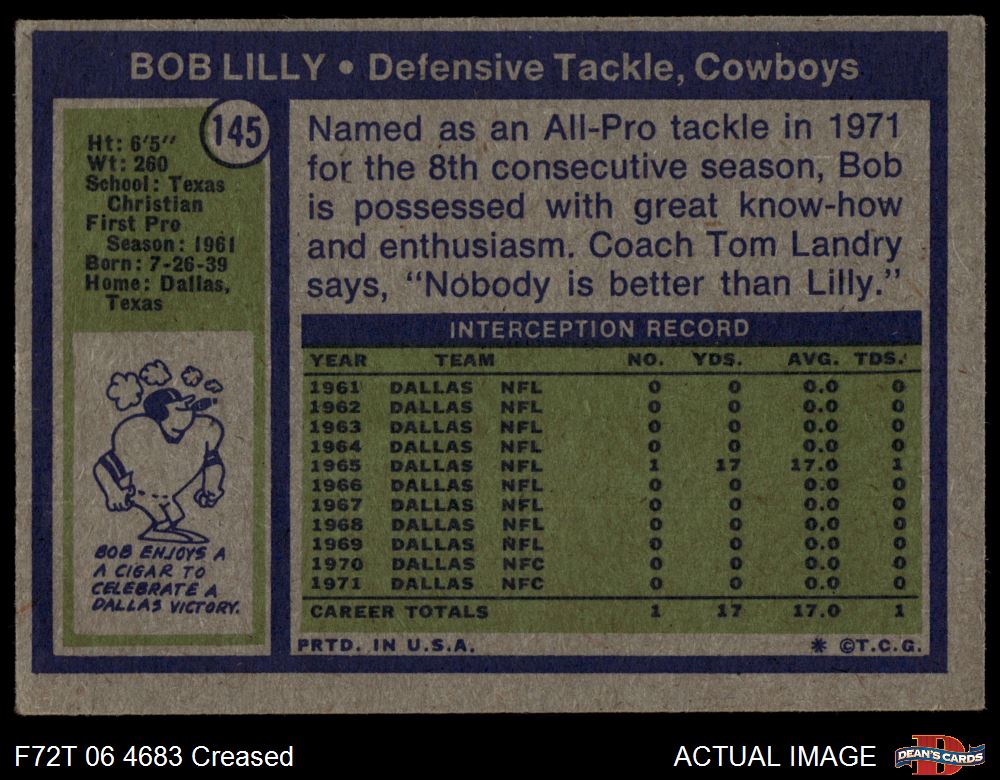 1972 Topps #145 Bob Lilly 2 - GOOD