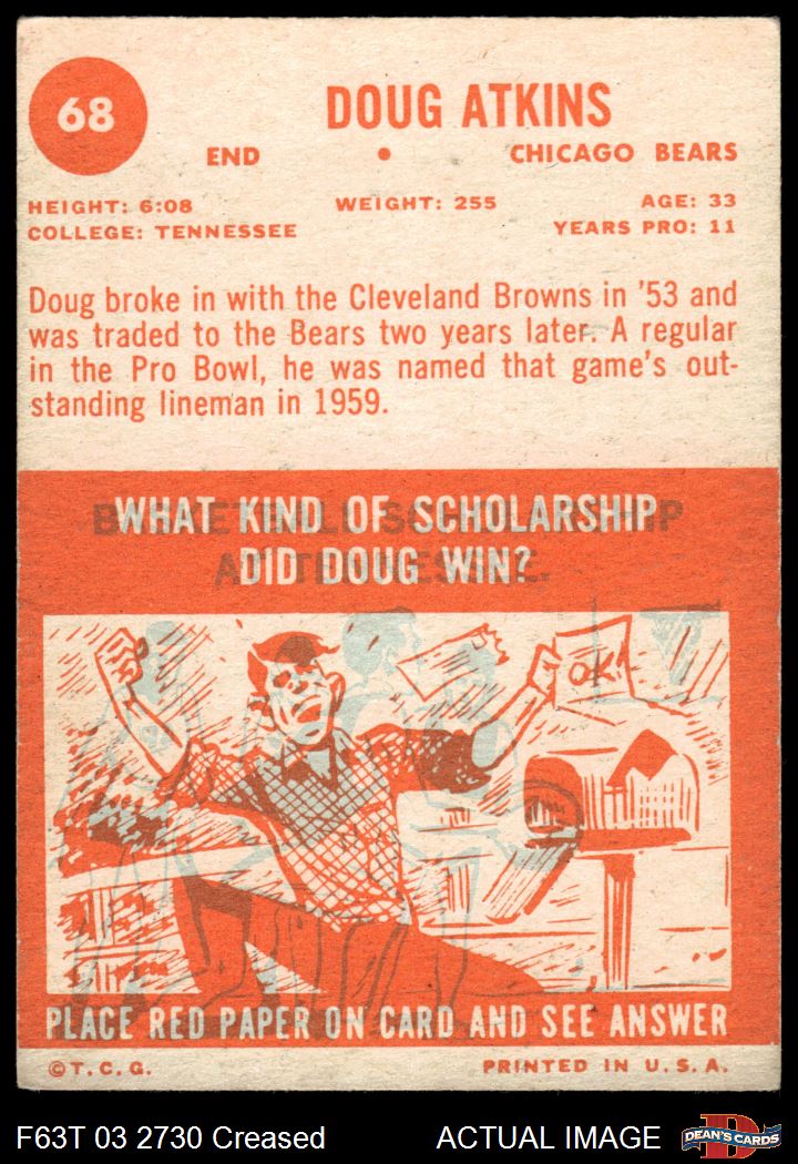 1963 Topps #68 Doug Atkins 3 - VG