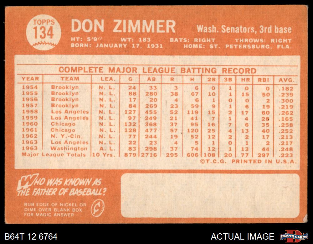 1964 Topps #134 Don Zimmer Front Thumbnail