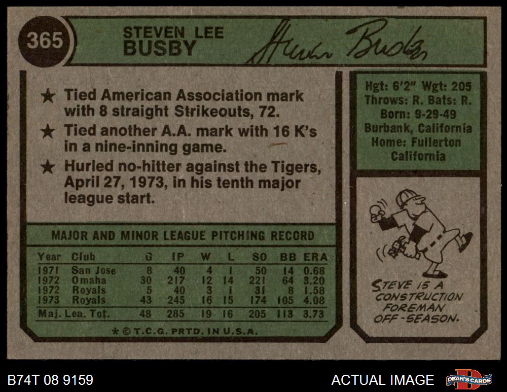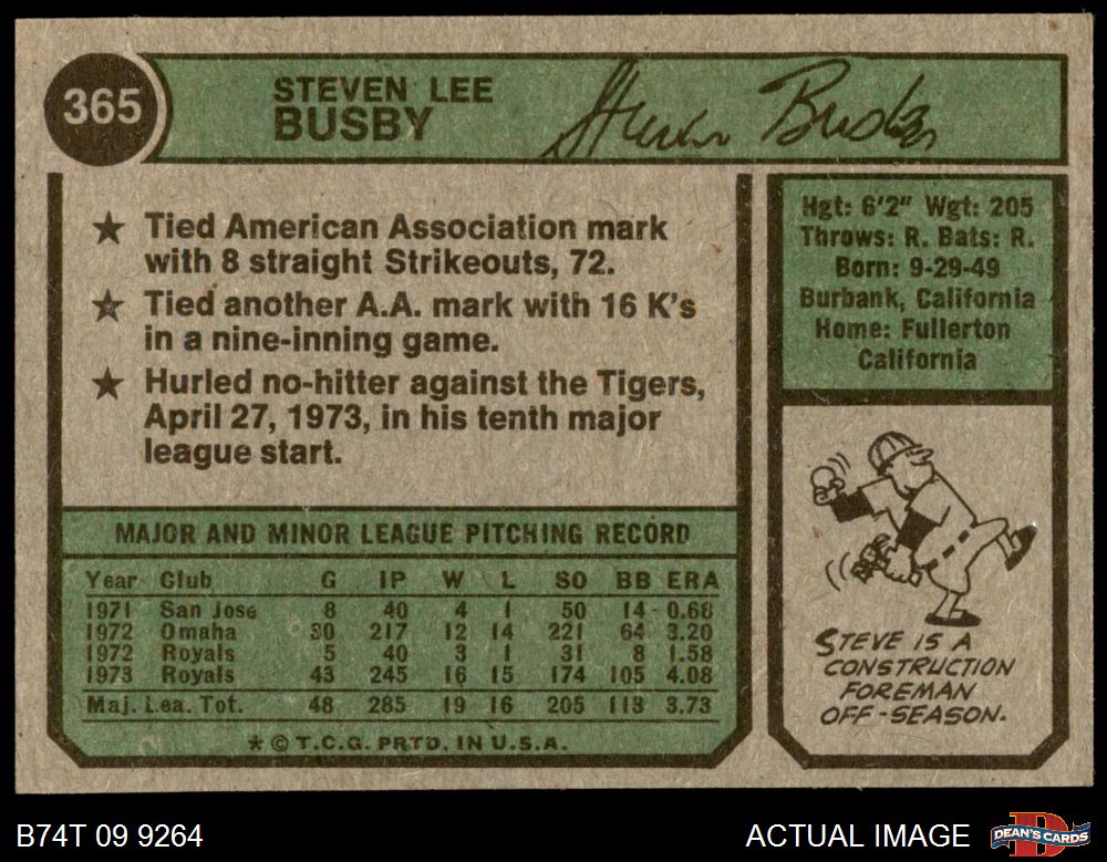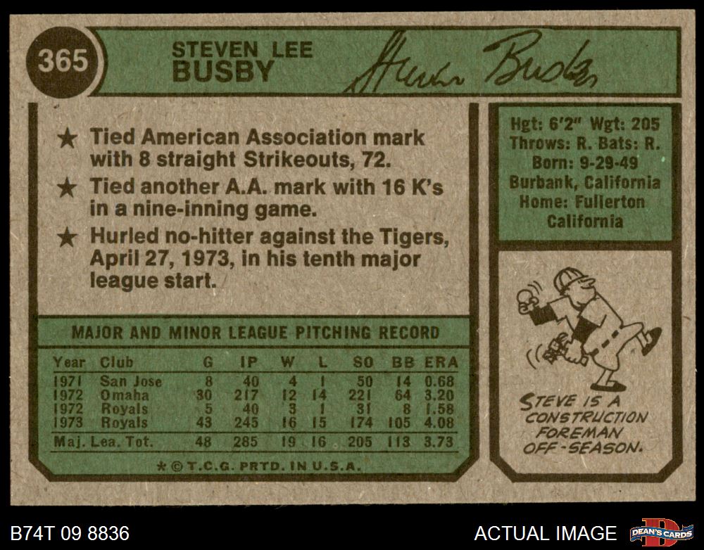1974 Topps #365 Steve Busby 6 - EX/MT