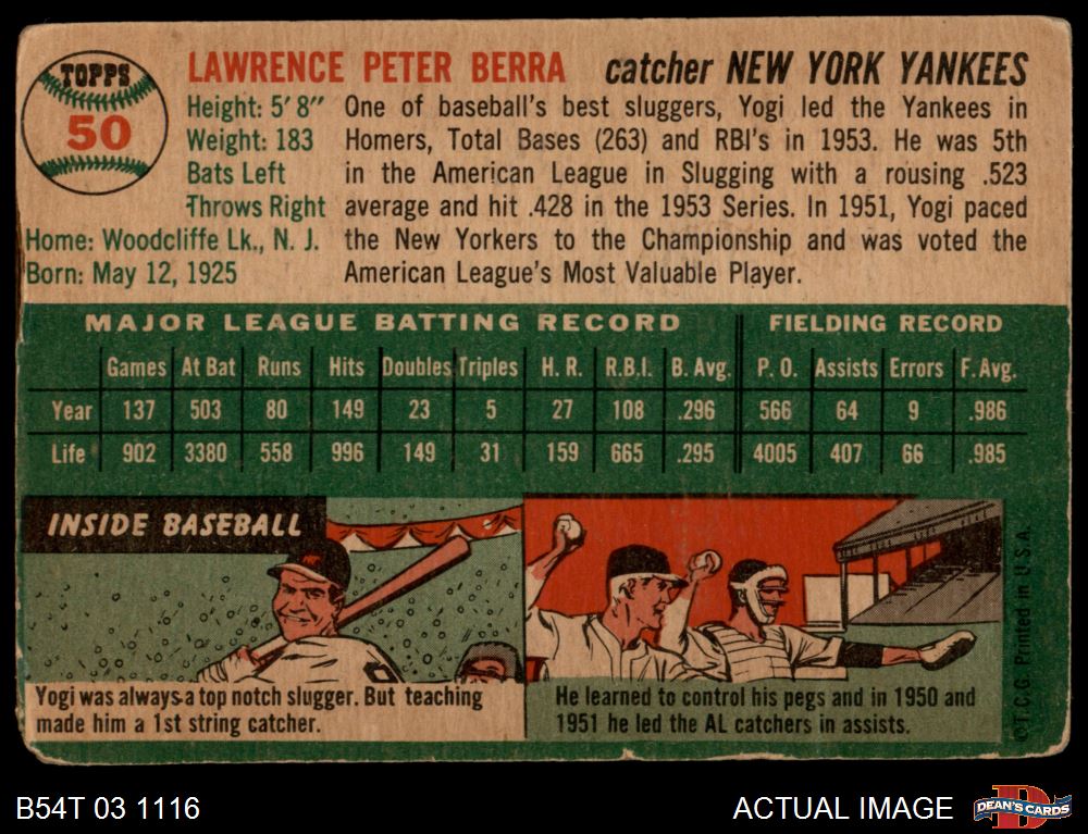 1954 Topps #50 WHT Yogi Berra 1 - POOR