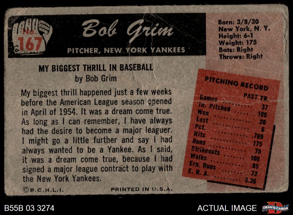 1955 Bowman #167 Bob Grim AUTHENTIC