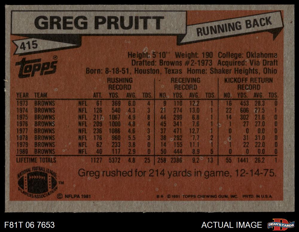 1981 Topps #415 Greg Pruitt
