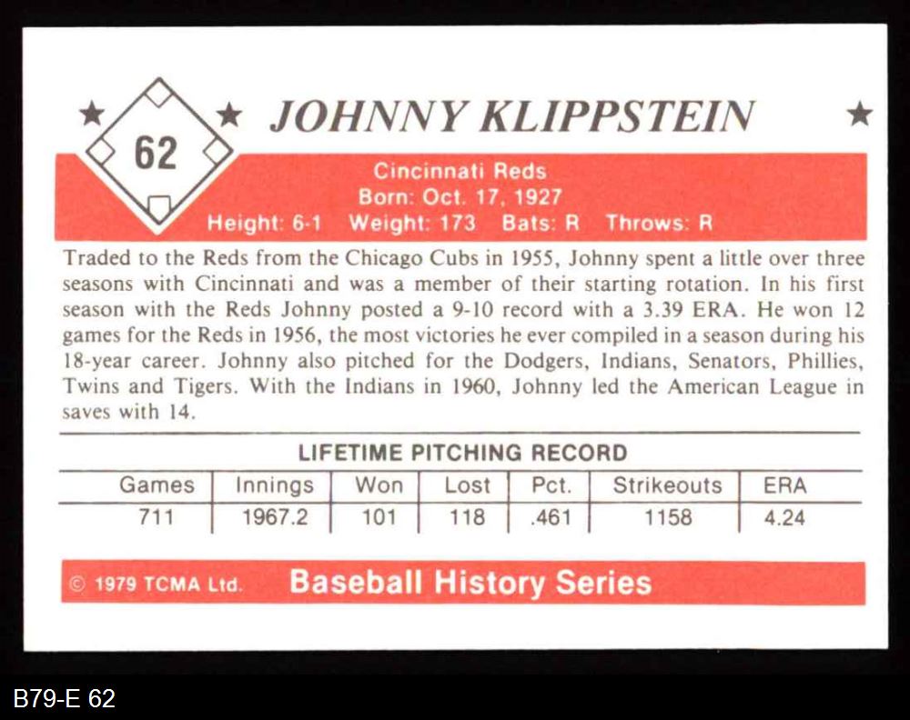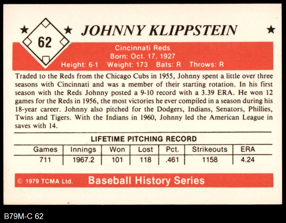 1979 TCMA The 1950's #62 Johnny Klippstein