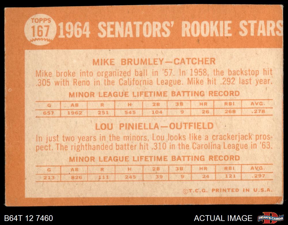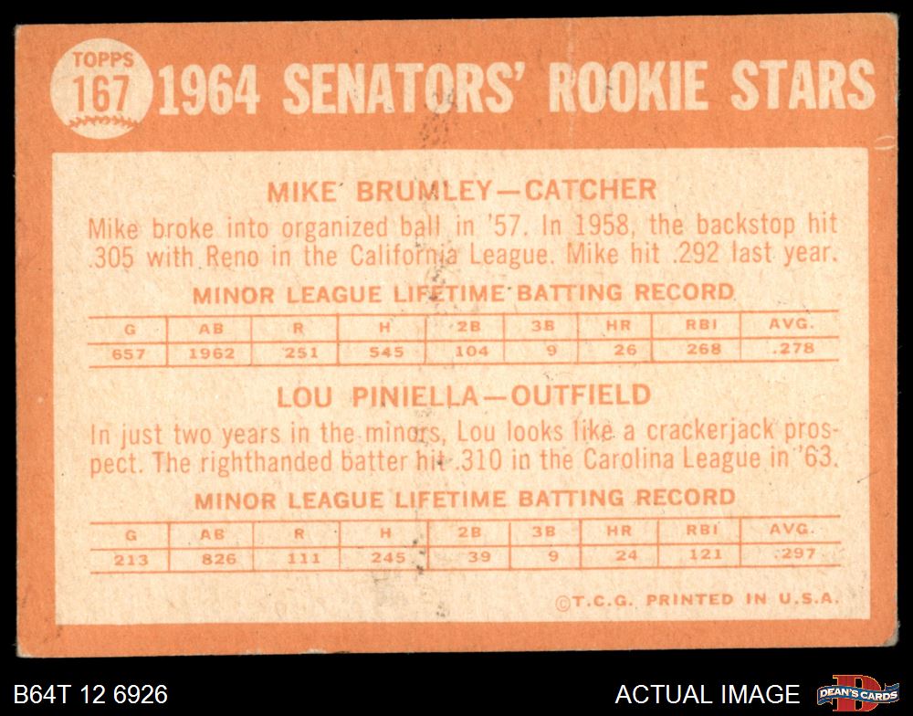 1964 Topps #167 - Lou Piniella / Mike Brumley Senators Rookies 3 - VG
