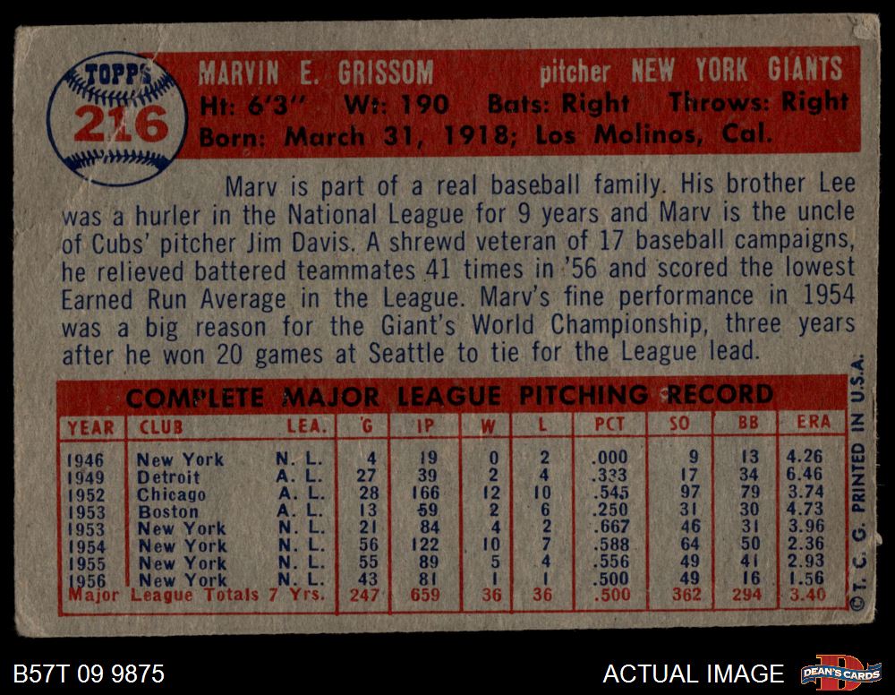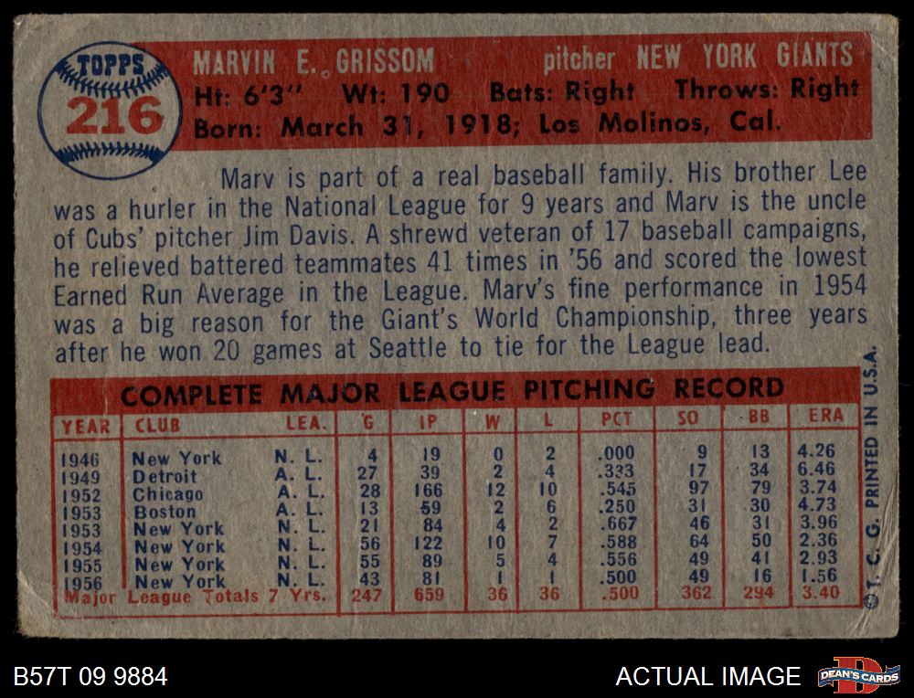 1957 Topps #216 Marv Grissom