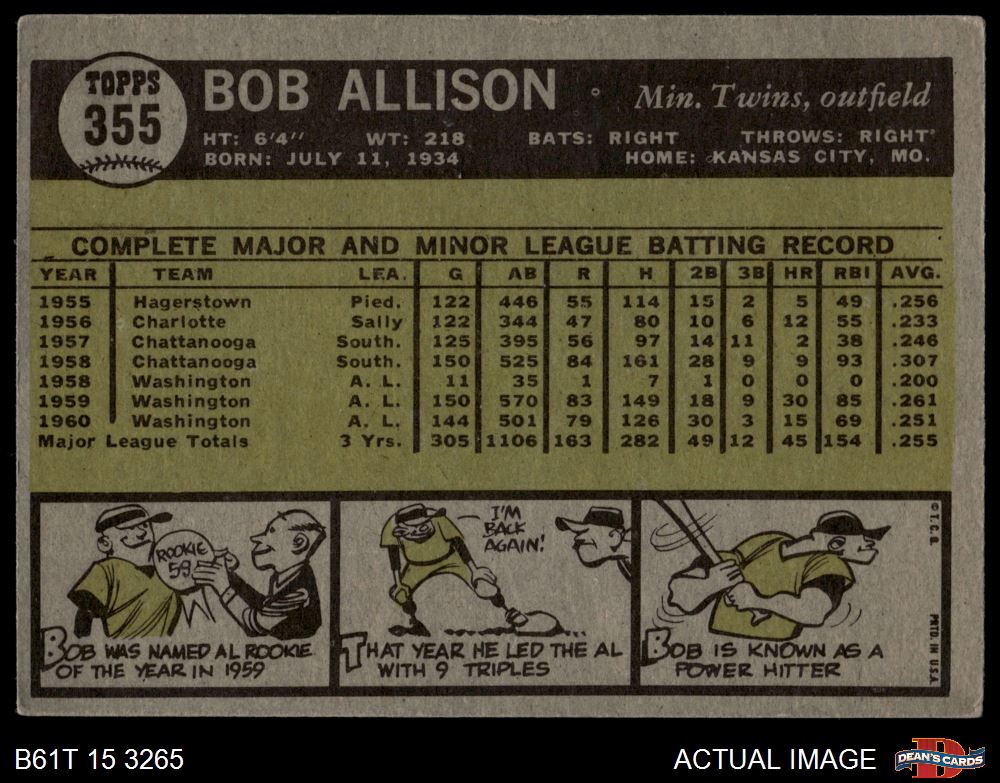 1961 Topps #355 Bob Allison