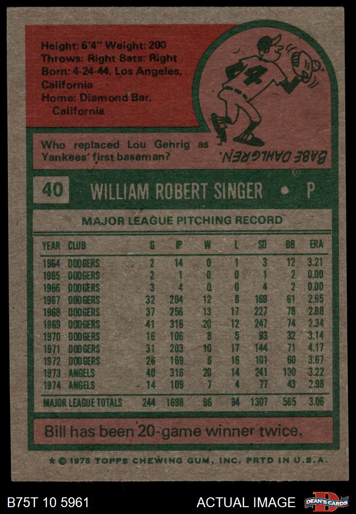 1975 Topps #40 Bill Singer 7.5 - NM+