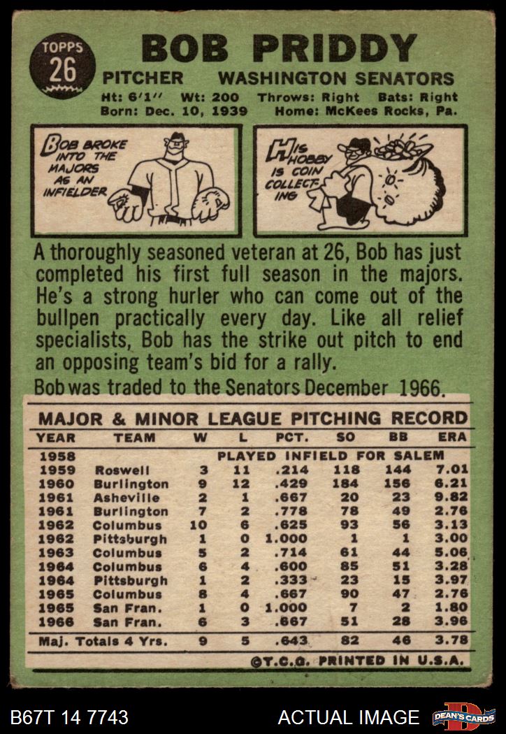 1967 Topps #26 TR Bob Priddy 2 - GOOD