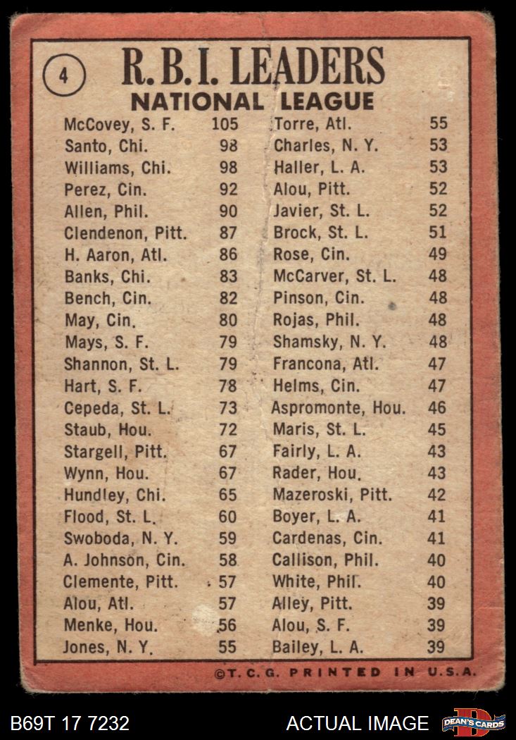 1969 Topps #4 - Willie McCovey / Ron Santo / Billy Williams NL RBI Leaders 1 - POOR