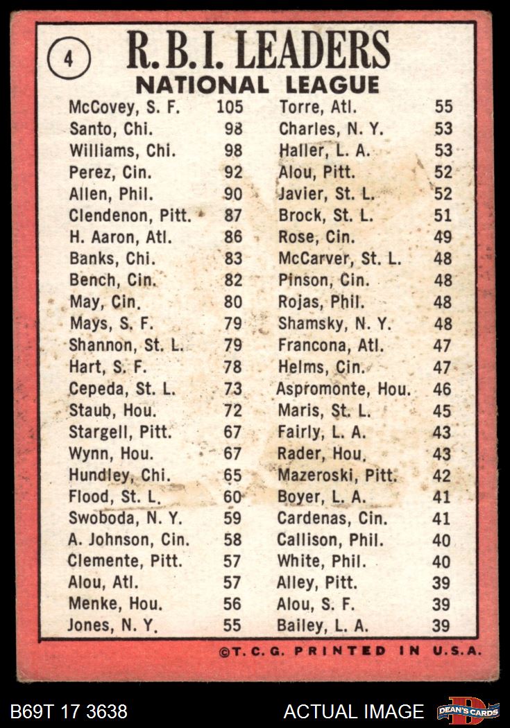 1969 Topps #4 - Willie McCovey / Ron Santo / Billy Williams NL RBI Leaders 1.5 - FAIR