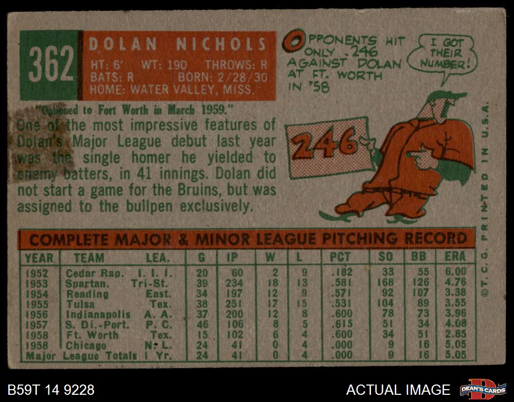 1959 Topps #362 OPT Dolan Nichols AUTHENTIC