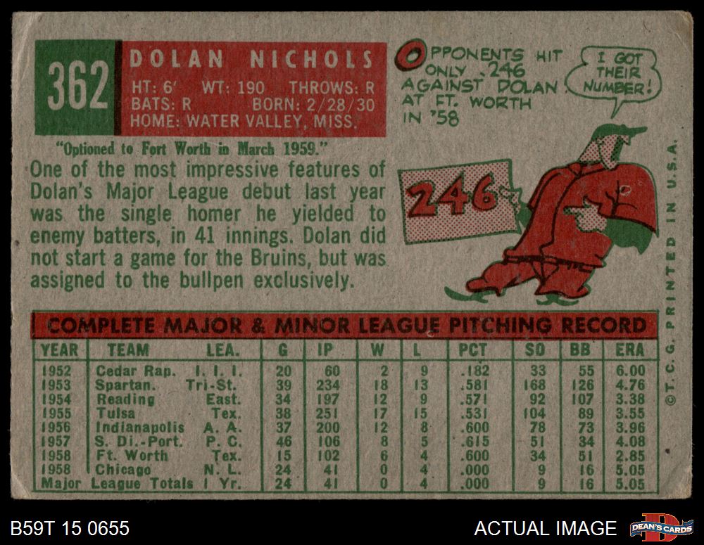 1959 Topps #362 OPT Dolan Nichols