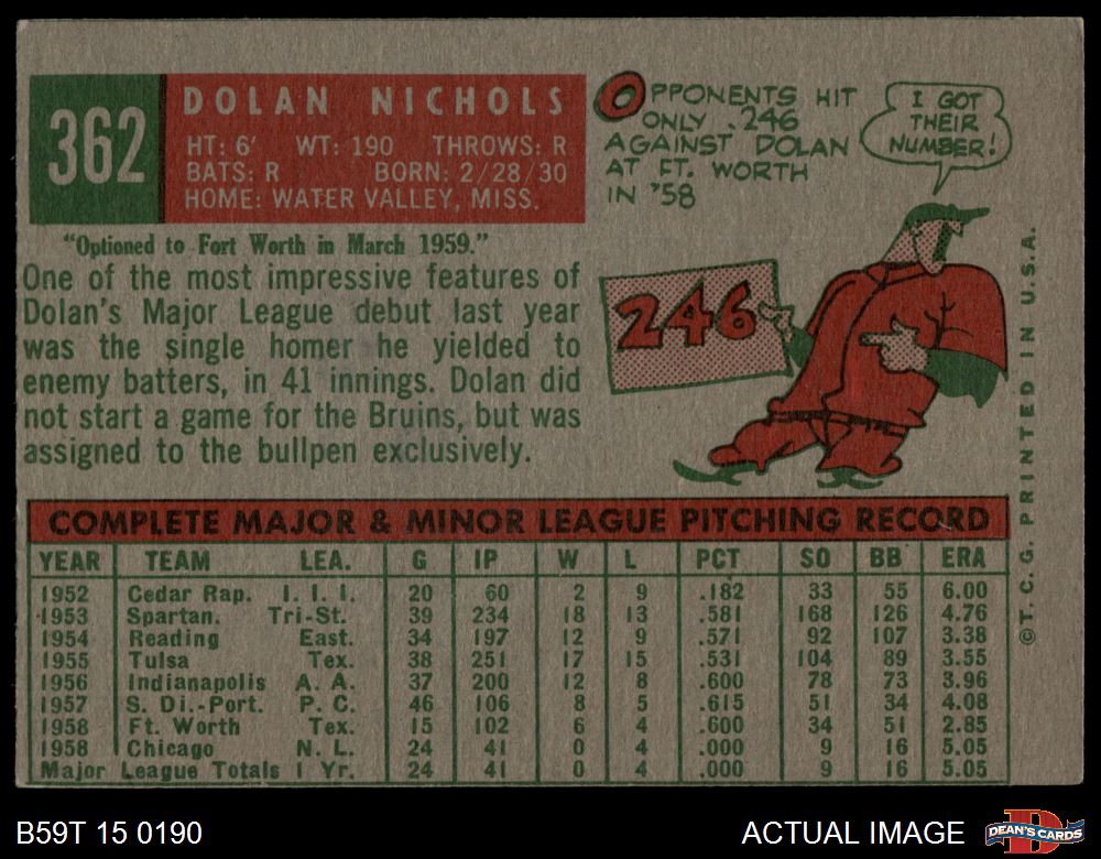 1959 Topps #362 OPT Dolan Nichols 3 - VG