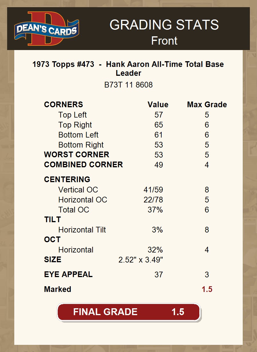 1973 Topps #473 - Hank Aaron All-Time Total Base Leader 1.5 - FAIR