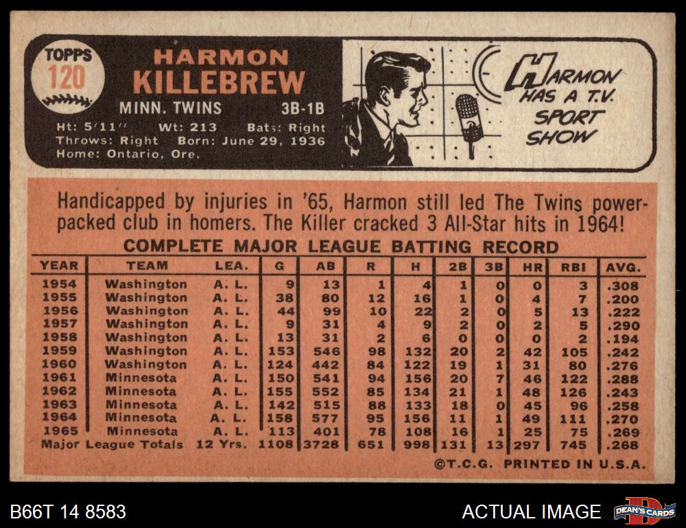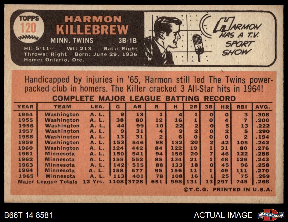 1966 Topps #120 Harmon Killebrew 5 - EX