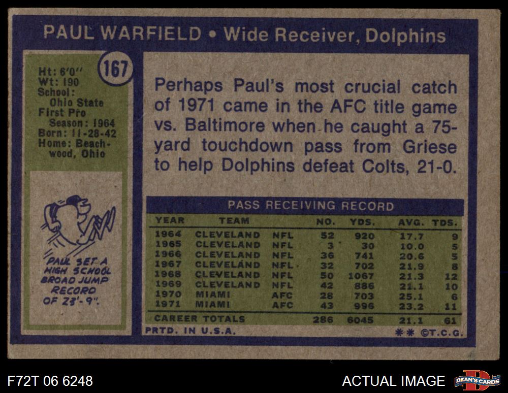 1972 Topps #167 Paul Warfield 4 - VG/EX