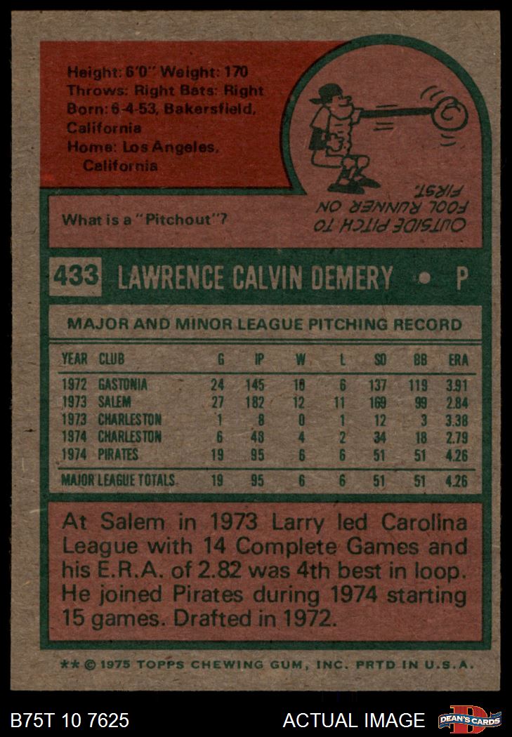 1975 Topps #433 Larry Demery 7 - NM