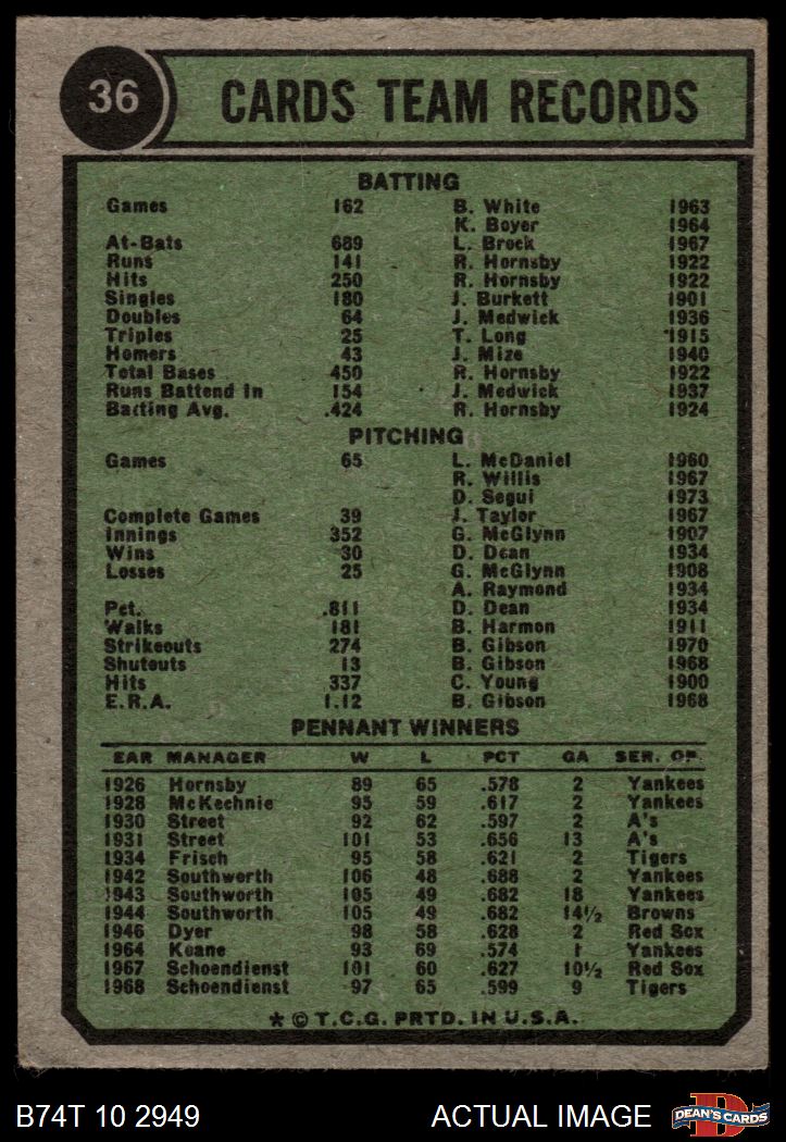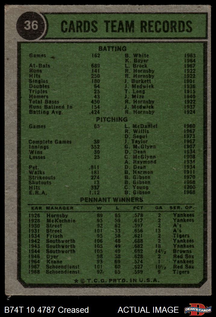 1974 Topps #36 Cardinals Team 2 - GOOD