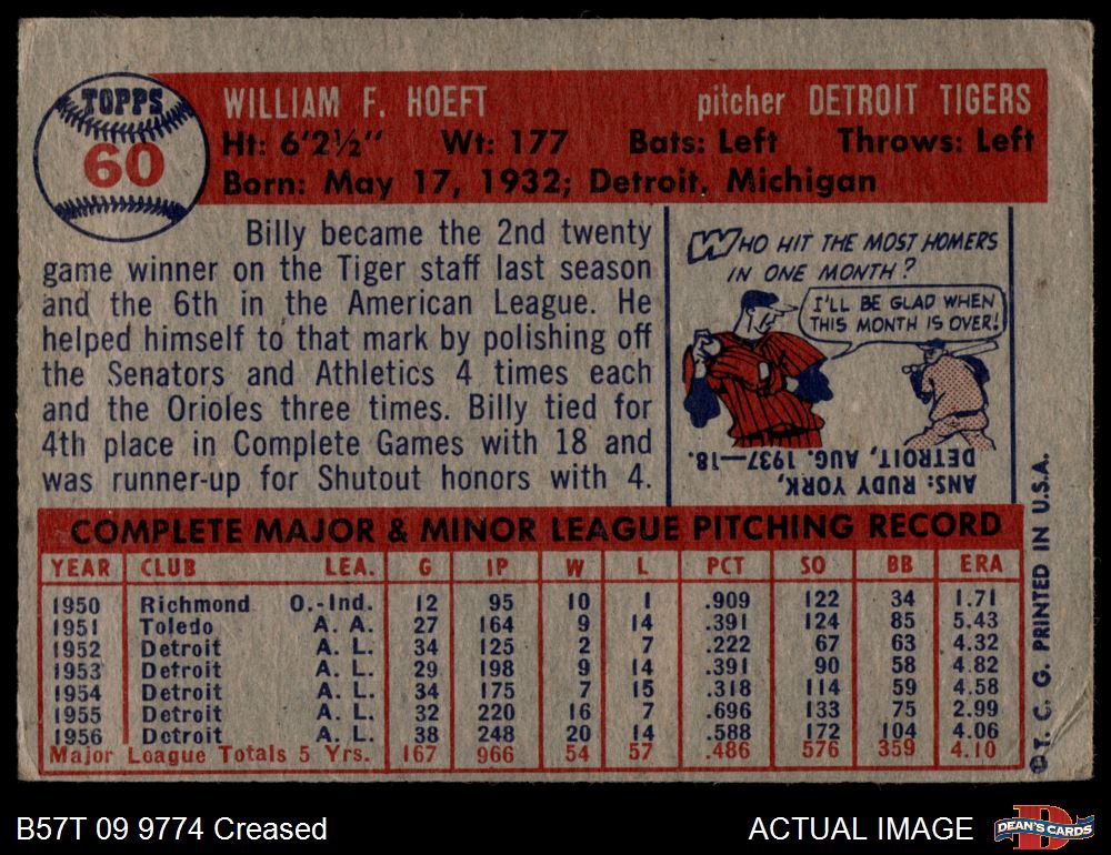 1957 Topps #60 Billy Hoeft 1.5 - FAIR