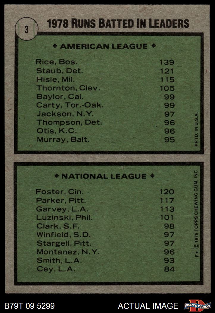 1979 Topps #3 - Jim Rice / George Foster RBI Leaders 4 - VG/EX