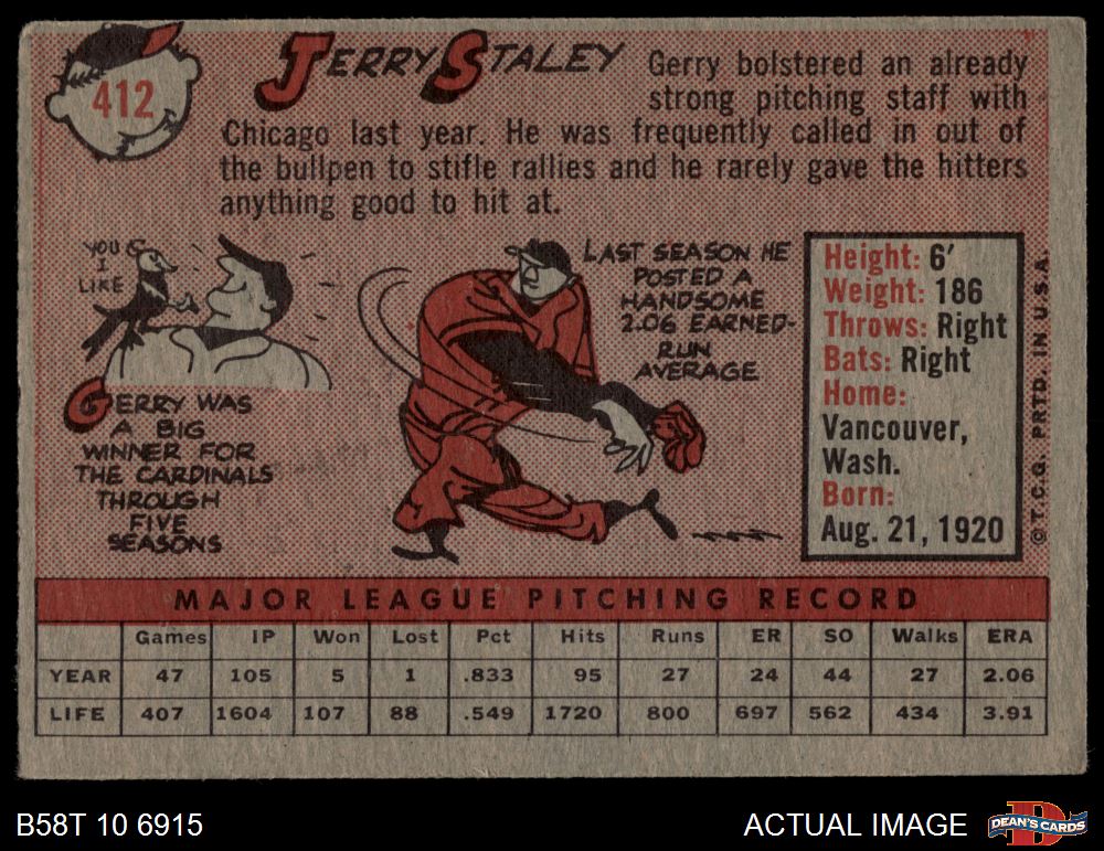 1958 Topps #412 Jerry Staley 2 - GOOD