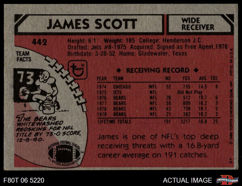 1980 Topps #442 James Jim Scott 3 - VG