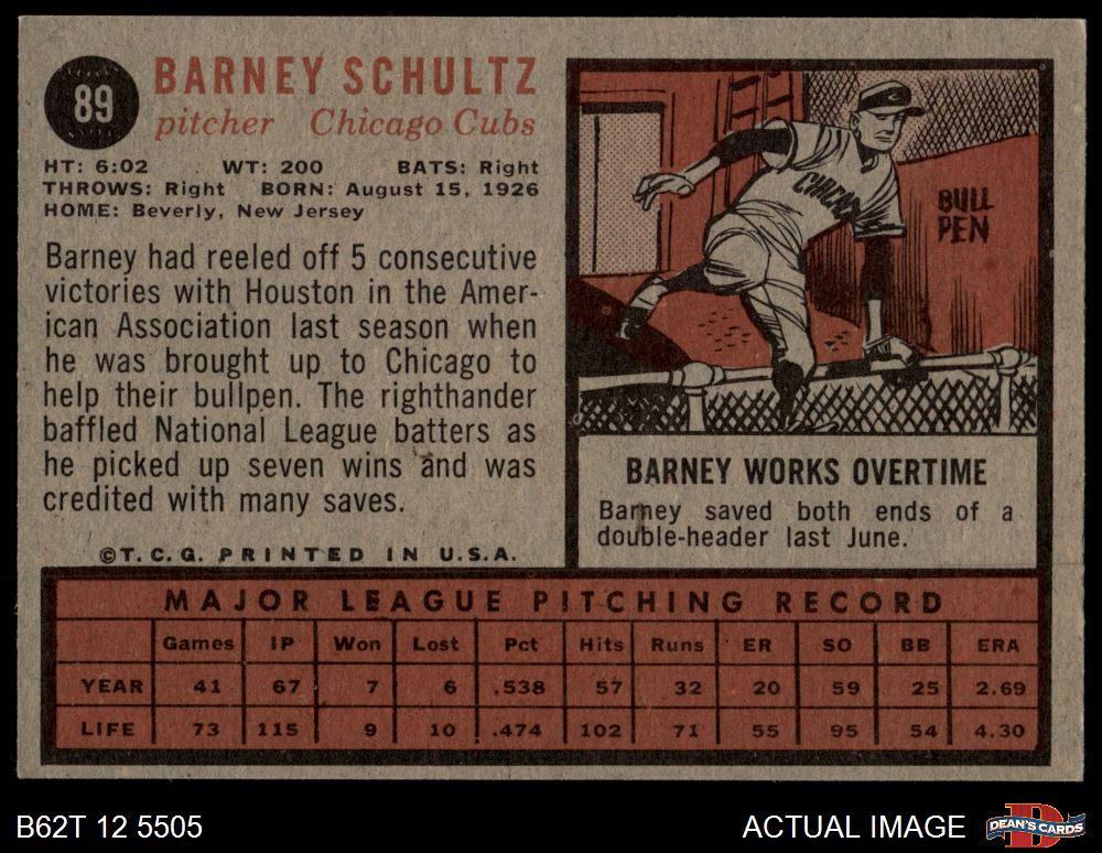1962 Topps #89 Barney Schultz 5 - EX