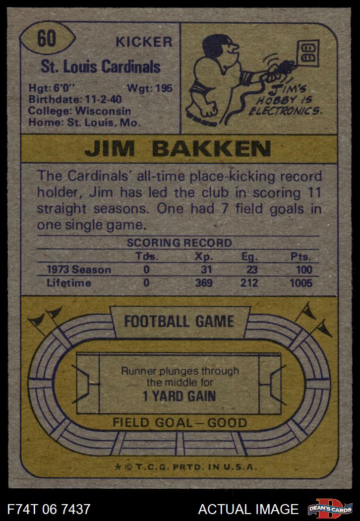 1974 Topps #60 Jim Bakken 8 - NM/MT