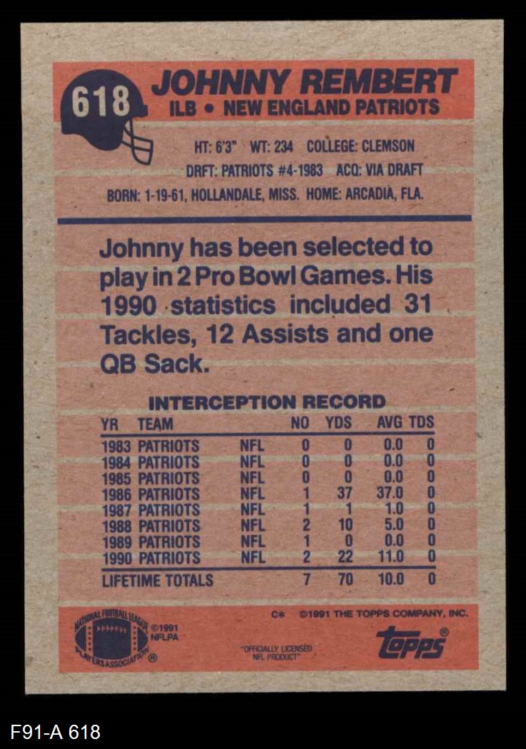 1991 Topps Football Cards (2,865 available)1991 Topps Patriots (105 available)