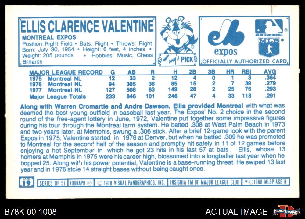 1978 Kellogg's #19 Ellis Valentine 2 - GOOD