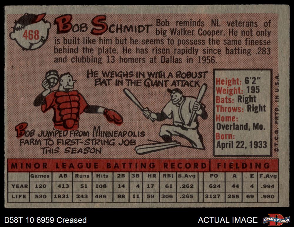 1958 Topps #468 Bob Schmidt 2 - GOOD