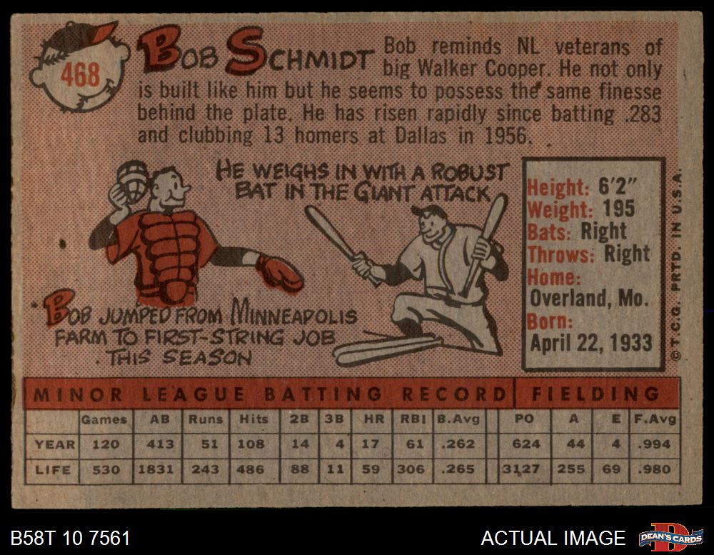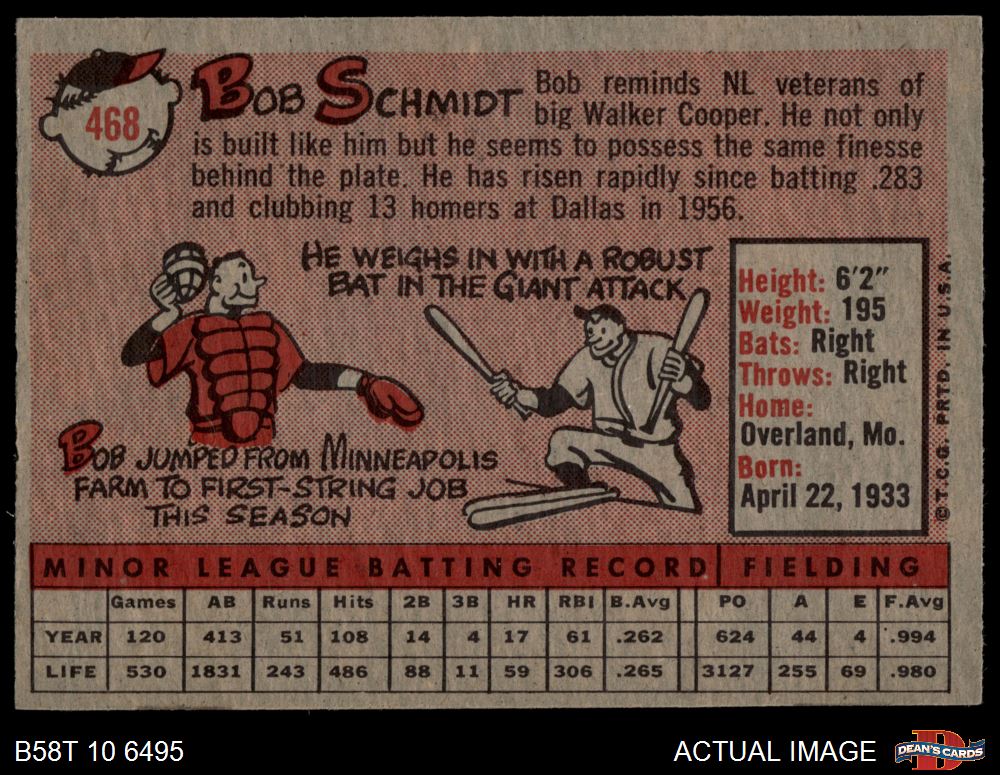 1958 Topps #468 Bob Schmidt 4 - VG/EX