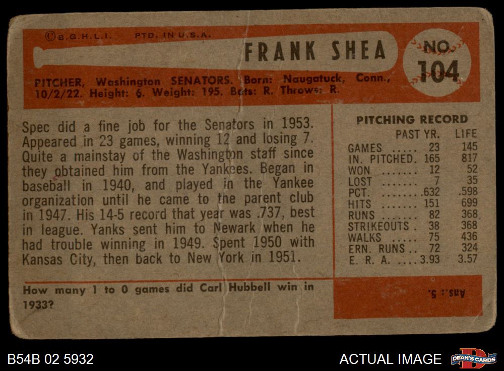 1954 Bowman Baseball Cards (2,220 available)1954 Bowman Senators (196 available)