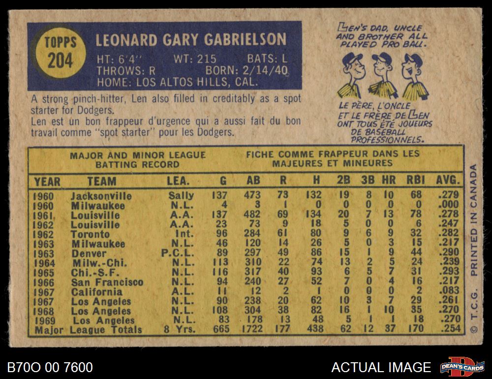 1970 O-Pee-Chee #204 Len Gabrielson 4 - VG/EX