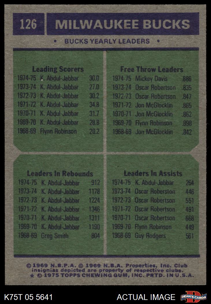 1975 Topps #126 - Kareem Abdul-Jabbar / Mickey Davis Bucks Leaders 7.5 - NM+