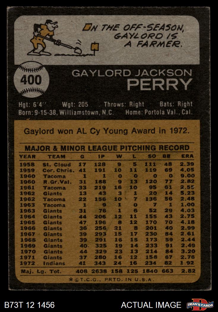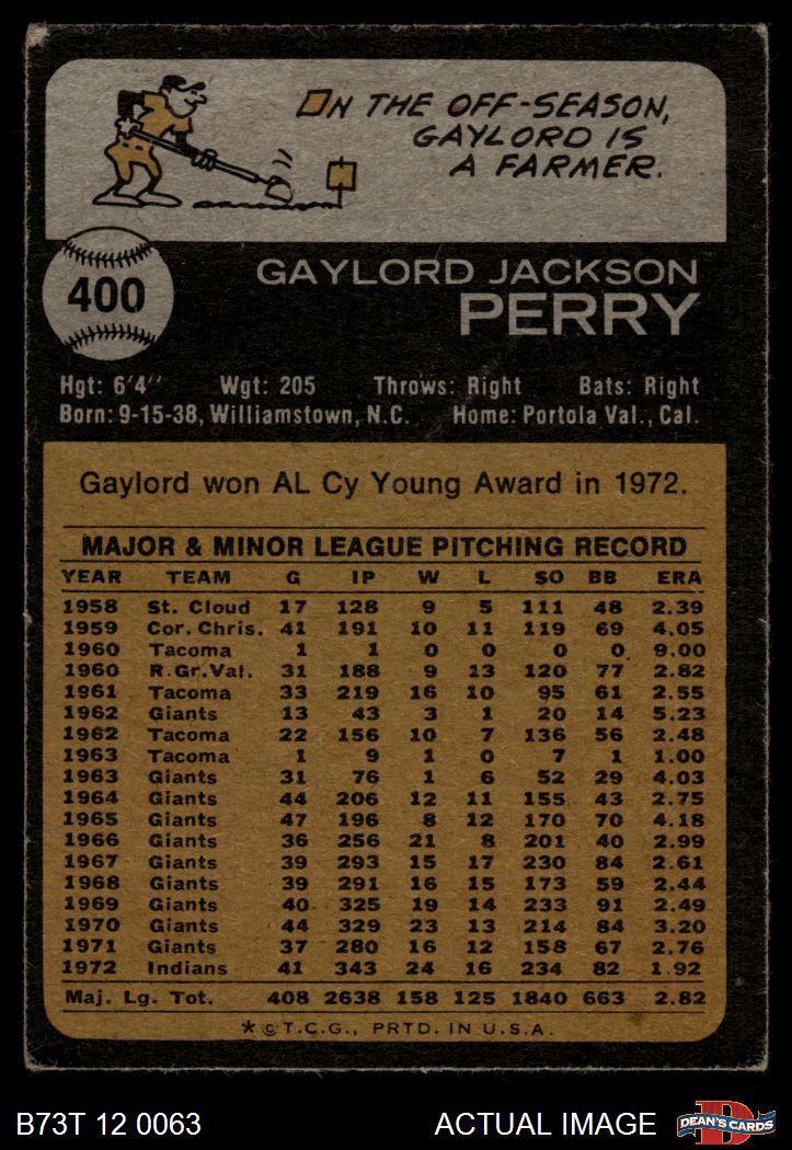 1973 Topps #400 Gaylord Perry 3 - VG