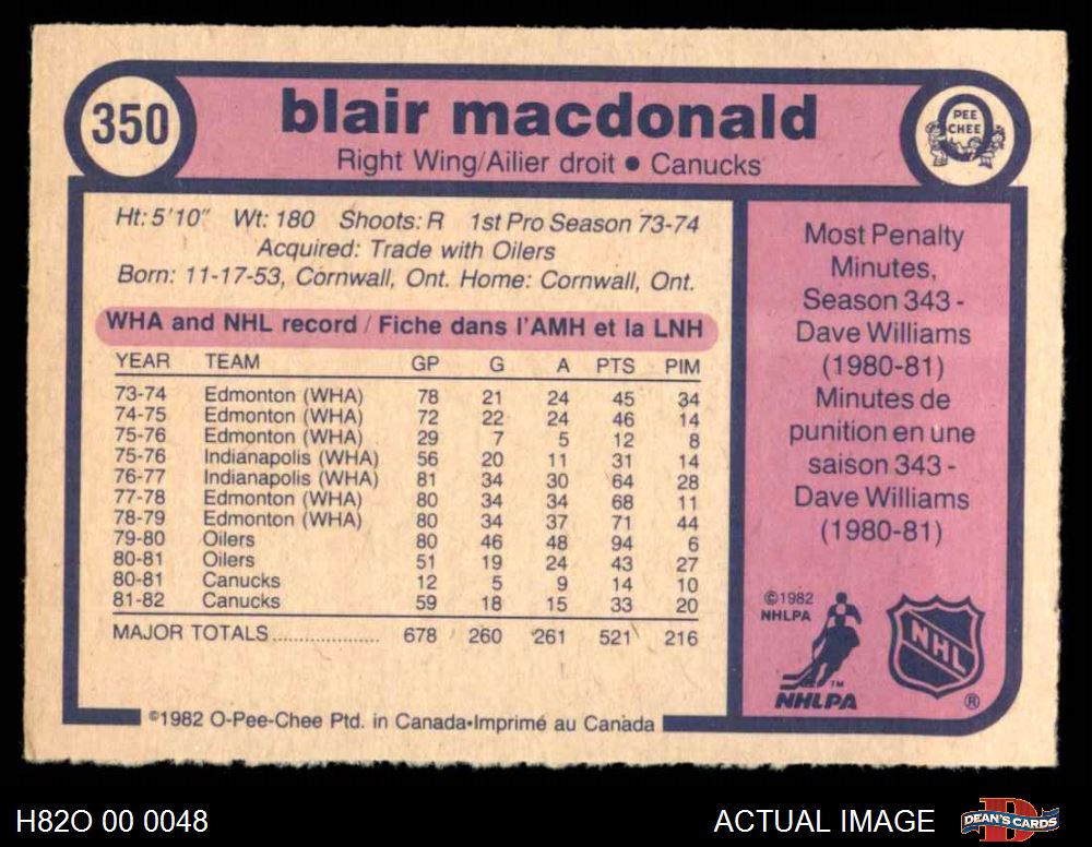 1982 O-Pee-Chee #350 Blair MacDonald