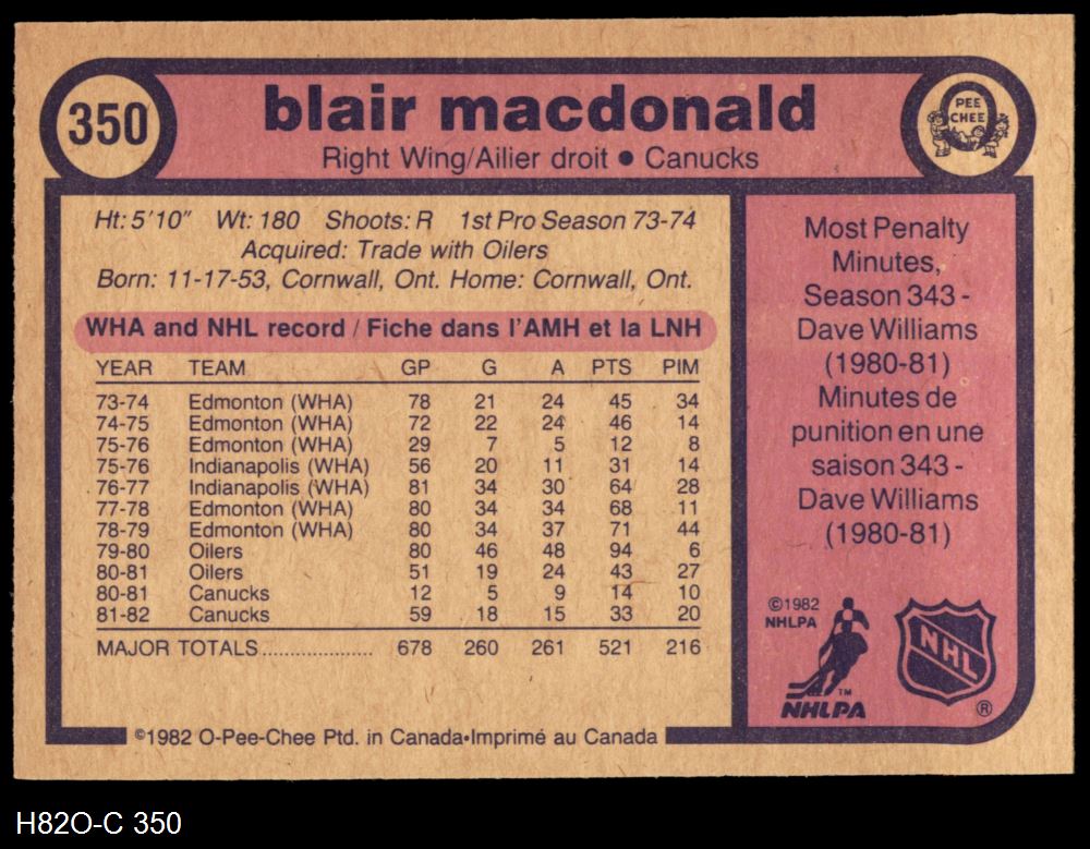 1982 O-Pee-Chee #350 Blair MacDonald 8 - NM/MT